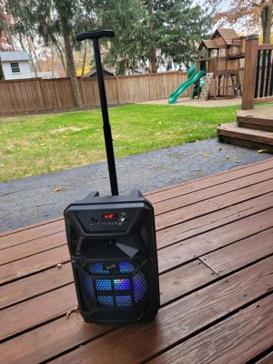 [This review was collected as part of a promotion.] This speaker is perfect for anything you might need one for! It’s loud, colorful, good audio quality, and comes with a mic! The wheels and handles make it easy to take anywhere. It connects easily, and you’re ready to jam! I love it.
