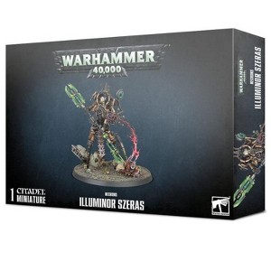 This pack is supplied as 34 plastic components and comes with a Citadel 80mm Round Base. The updated Warhammer 40,000 datasheet for Illuminor Szeras is included in the box.