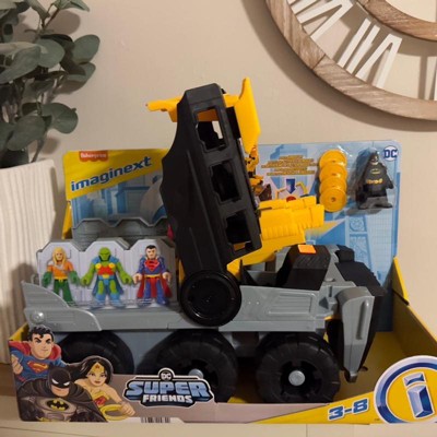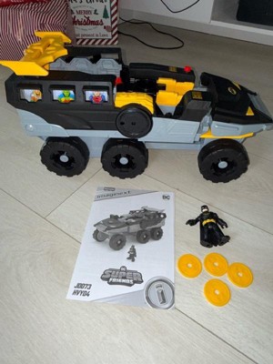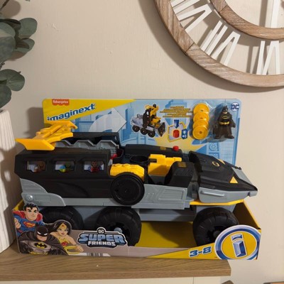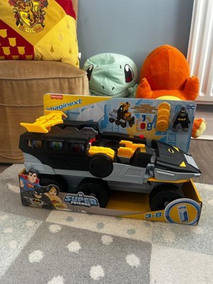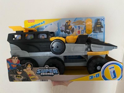 Preschool kids can help Batman chase down and capture the biggest DC Super-Villains of Gotham City with this Imaginext DC Super Friends Transforming Bat-Tank from Fisher-Price. At the turn of a Power Pad, this extra-large push-along vehicle transforms into battle mode with a hidden launcher to send projectiles flying & bad guys running for cover. Kids can jail up to 6 Imaginext figures in the transport truck for Batman to haul away. (Additional figures sold separately and subject to availability.)
