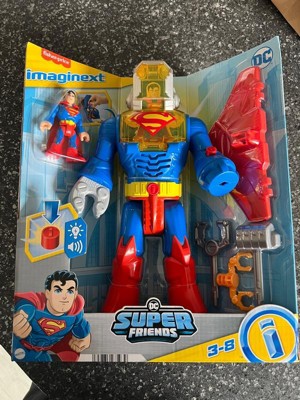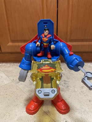Preschool kids can act out epic DC Super Hero adventures with this Imaginext DC Super Friends Superman Insider & Exo Suit robot playset from Fisher-Price. When bad guys start wreaking havoc in Metropolis, the Man of Steel launches into action with his Exo Suit. Kids can place the poseable Superman figure inside the Exo Suit cockpit then use the Power Pads to bring the rescue action to life with awesome lights, sounds and projectile-launching action! Colors and decorations may vary.