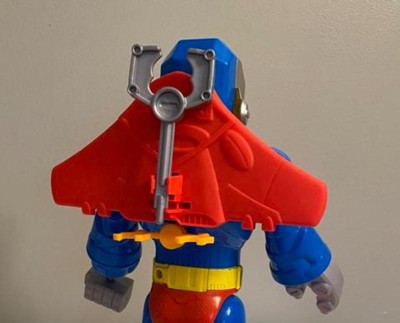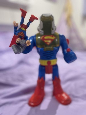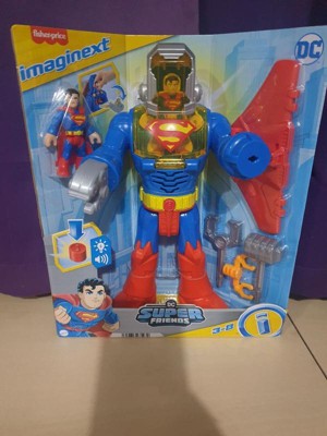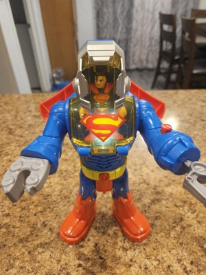 [This review was collected as part of a promotion.] This is a cool toy with a few options for play. A small Superman figure fits inside the mec. It lights up and makes a noise, the left hand has a punching fist and the right hand is a wrench. Overall fun to explore.
