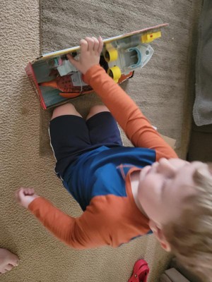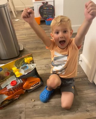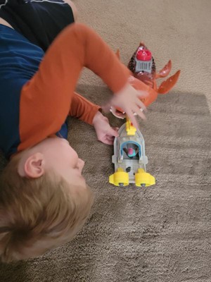 [This review was collected as part of a promotion.] My 5 year old loves this toy. It keeps him entertained for a long time and he can incorporate other toys with it too. The dino is cool because it moves back and forth just by pushing it. He’s always having it eat things too because it has a huge “stomach”. The e tea boat is so fun and has shooters. Overall, this is a great toy!