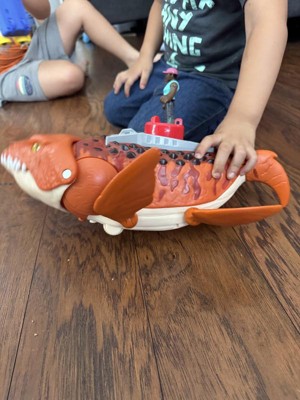 [This review was collected as part of a promotion.] The “Dinosharko” is what my son calls it. It keeps him occupied the whole time, he even blew off Bluey to keep on playing with his “Dinosharko”. Needless to say I think Mattel is on to something with this one.