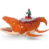 [This review was collected as part of a promotion.] Received this product a few weeks ago; it was larger than it appeared in pictures. The large dinosaur makes loud roaring noises, rolls on the ground manually and can flap its fins manually as well. It also came with a small boat, spear gun that attaches and detaches from the boat and shoots spears, with two spears, and a male character from the movie.