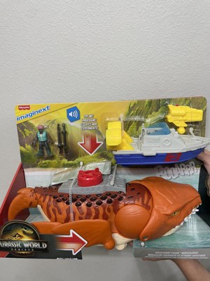 - Inspired by Jurassic World Rebirth, the Imaginext Aquachomp Mosasaurus playset by Fisher-Price is ready to chomp, chase and roar its way into fans' homes!
