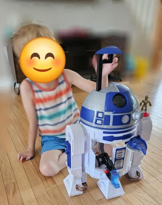 - Kids can imagine fun STAR WARS stories with this large (17.5 inches tall) R2-D2 interactive toy featuring cool lights, sounds and kid-controlled action