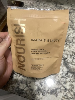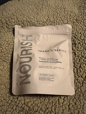 I've been trying the Imaraïs Beauty NOURISH gummies for a few weeks, and I love the concept behind them. They contain reishi, chaga, and snow mushrooms, all known for their benefits in hair and overall wellness. The blueberry flavor is mild but enjoyable, and the texture is pleasantly chewy without being too sticky. I also appreciate that they’re sugar-free and vegan, making them a clean choice for my routine. While it’s still early to see drastic hair changes, my nails and skin seem healthier, which is a great bonus. The packaging is sleek and travel-friendly, adding to the premium feel. If you’re looking for a holistic approach to beauty from within, these gummies are worth considering!