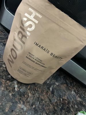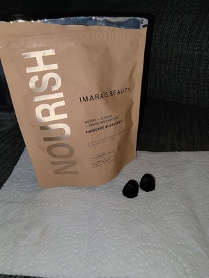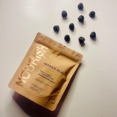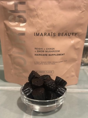 Bottom line. Yes, the gummies taste amazing! Not-too-tart blueberry with no strange aftertaste. No, they don't taste like mushroom, or anything close to earthy. Juwt two small gum-drop sized gummies takes care of your daily serving, and there are 30 servings in a perfectly portable bag! The bag itself is durable enough to toss around for a month, and still purpose, or REpurposese it afterwards while maintaining a small carbon footprint. What's inside is priceless. The blend of supplements is addresses hair loss from the inside-out, with vitamins and minerals known to fortify the cells that promote hair growth, shine, strength, and scalp health. For me, I noticed a positive change after about a week of using Imarais... , and then it felt like every few days, I would notice longer, stronger, shinier hair, more and more. I highly recommend this product for all skin types! This review was collected as part of a promotion.