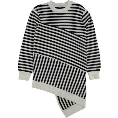 • Trendy crewneck pullover with chic striped design.