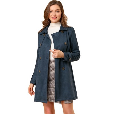 Imily Bela Womens Cropped Double Breasted Trench Coat with Raglan Sleeves and Pockets for Office Navy Blue L
