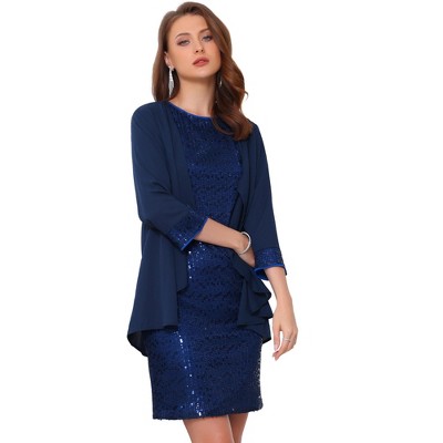Imily Bela Womens Mock Neck Ribbed Sweaters Mini Skirt Fall Winter 2 Piece Skirt Sets Two Piece Outfits Blue L