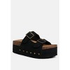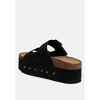 Are you even living in the 21st century modern era if you don't own a pair of these slip ons? Stylish, versatile, and a rad aesthetic with the cork detail and double pin buckle vamp, the pair is also comfortable with the flat platforms. The slip on design gives them an easy to wear experience, perfect for daily wear. A personal styling tip? Pair them with your favorite socks for a trendy chic look! Type: Slip Ons Upper Material: Faux Leather Outer Sole: TPR Open Round Toe Flat Platforms Slip On Design Double Pin Buckle Straps Vamp Stud Embellishments Soft Cushion Insoles Heel Height: 1.5 inches SH5374