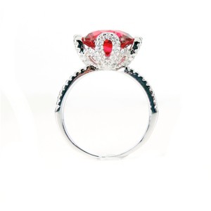 • Unique Design: The Imperial Engagement Ring features a unique and eye-catching design with a large 11mm red cubic zirconia solitaire and clear cubic zirconia stones on the split shank band.