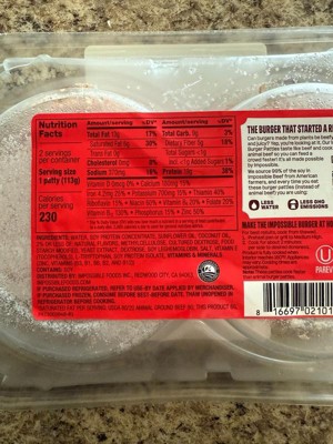 [This review was collected as part of a promotion.] (I received this product in exchange for my honest opinion thanks INFLUENCER) I recently tried the Impossible Burger patties and was pleasantly surprised. The taste is impressively close to real beef, with a rich, slightly smoky flavor that works great in burgers. The texture is also very realistic - juicy, slightly firm, and satisfying to bite into, especially when grilled. As for the ingredients, they're made mostly from soy protein, sunflower oil, and coconut with heme giving it that meaty flavor. It's entirely plant-based, making it a good option for vegetarians and vegans. The packaging is simple and eco-friendly, with clear labeling and easy-to-open plastic wrap.