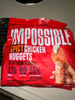 [This review was collected as part of a promotion.] I was very impressed by these impossible foods of spicy chicken nuggets! The taste and texture are that a fast food style chicken nugget, or any other frozen chicken nuggets. It's almost as textured as meat, not soft or squishy. I am a spice fanatic so I would give the spice level a 2 out of 10 but that did not make or break it for me. I think it just added to the flavor. I feel like I only slightly got hints of kind of like a planty protein -ish but nothing off putting or nothing that would skew me from getting these again. Using instacart to purchase this. I feel that the price is not too bad, especially for something that's been processed into having a taste and texture to almost meat, so I think this is really awesome. Overall I was really impressed with this. I was not sure what to expect and I think for a nice alternative to meet these are a great option. Decent price point and looking at other items from this brand. Seems like there are some great options in terms of style and flavor. I ate this with roasted poblano ranch dip and I felt that just added a little more flavor to these overall. I would definitely recommend eating it with a dip but you don't have to. Overall very impressed with this item and how well it tasted.