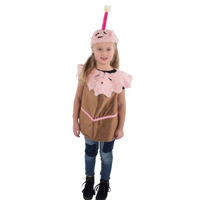 A pink water cup tunic costume with a straw headband, featuring a foam tunic shaped like a water cup with a 3D handle. Made of 100% polyester, spot clean only. Sold separately shirt and pants. Fits tweens size 12-14.