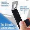 The key to a successful camping trip, tailgate, or boating outing is a reliable cooler stocked with all your favorite food and beverages. We know you've made an investment in your cooler, and unfortunately, it can be an easy target when left unattended. That’s why this bracket lock, designed for use with a wide range of medium and large ice chests, is the perfect solution to help keep your cooler secure. Made from high-quality stainless steel with a protective coating to help prevent scratches, it’s both strong and durable to ensure your belongings stay safe.