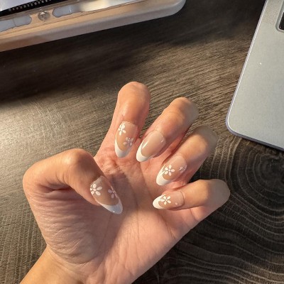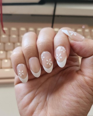 - White Almond Medium Stick On Nails 30 Fake Nails