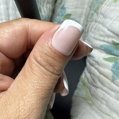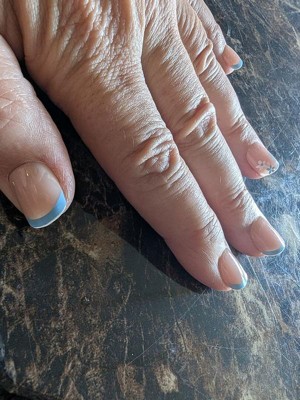 I’ve only had these on for a few hours and cannot stand them! The glue strip doesn’t extend all the way to the back, so there’s a gap underneath the nail that catches your hair. The glue strip also extends beyond my natural nail in the front so there’s a sticky spot under each nail that kept catching fuzz, dog hair, my hair, dirt, etc. I had to use a makeup brush to apply corn starch to stop them from picking up everything. And because the ‘glue’ doesn’t actually dry, the nails constantly shift around. You can feel them move and lift while using your hands. I hate them! I can’t wait to remove them after work.