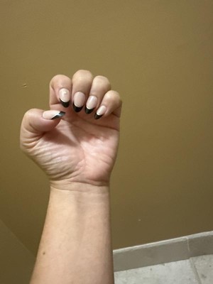 [This review was collected as part of a promotion.] woo hoo ♡ super adorable cheeky name for beautiful nails. It has a nice vision, black tips, and a very subtle amount of glitter on some of the nails. The juxtaposition is perfect. It’s dark, sweet, and very playful. Another score another happyCustomer. 🚀