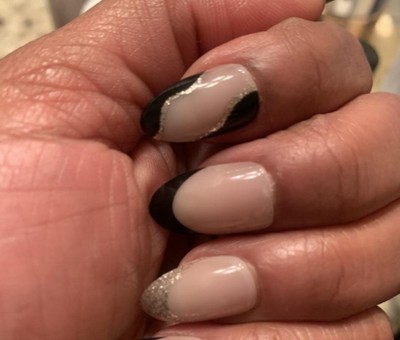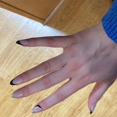 So… these look great! I’ve gotten lots of compliments on them. However, if you look closely at the sides (see 2nd pic), you’ll notice they’re very pointed, so they don’t quite match the shape of my natural nail. It’s something only I notice since no one really studies my hands that closely 😅, but that’s why I didn’t give a full five stars. If you have smaller nail beds or more rounded nails, these might be perfect for you! And the seal/adhesive doesn't go to the base of the nail so when I wash my hair, my hair snags/catches.
