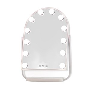 Impressions Vanity mirror, the essential accessory for anyone who wants to achieve flawless makeup application and grooming. Eliminate the poorly lit spaces and introduce a crystal clear reflection that leaves no detail unnoticed. Equipped with advanced features, this lighted makeup mirror takes your beauty routine to the next level. The three soft touch sensor switches provide effortless control, allowing you to tap to turn on the make up mirror and hold down to adjust the brightness according to your needs. With 12 LED lights offering three light color temperatures, you can customize the illumination to suit any environment or time of day. Designed for convenience, this Hollywood mirror boasts a 360˚ rotation function, allowing you to position it at the perfect angle. The stable stand ensures a secure foundation, so you can focus on your beauty routine without any worries. The classic arched premium iron frame adds a touch of elegance to any space, while its polished look enhances the overall aesthetic. Compact yet spacious, this tabletop light up table mirror measures 12.91 inches in height and 18.66 inches in width, making it a versatile addition to your dressing area or bathroom countertop.