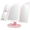 Impressions Vanity Hello Kitty Bowtastic Vacay arch trifold LED makeup mirror is a must have accessory for anyone who takes their beauty routine seriously. This makeup mirror for desks combines functionality with modern design, making it a perfect addition to your vanity or bathroom. One of the magnifying mirrors standout features is the dual sided design, which includes a standard mirror on one side and a reflected lighted magnifying mirror on the other