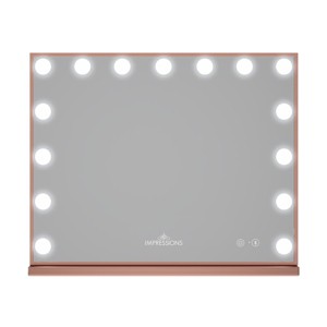 Overview The Impressions Vanity Hollywood Aurora Makeup Mirror is the modern vanity experience—a sleek yet glamorous design that provides a perfect, even lighting and superior mirror reflection clarity. Ideal for makeup application at any setting, home or professional—also for taking that perfect Instagram selfie! Features