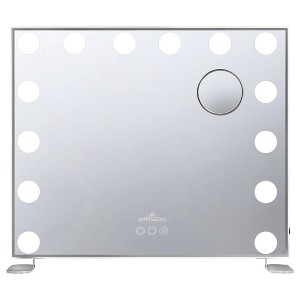 Overview Fit our ultra-slim Hollywood Tri-Tone PLUS Makeup Mirror anywhere and complete your vanity set! Equipped with built-in long-lasting LED Lights around the mirror for even lighting. Tap the power button to power it on/off and hold to adjust the brightness to your perfect level. Tap the lighting button to switch between natural, warm, or cool lighting. The mirror comes with legs you can attach and have it sit on your makeup station. Or remove the legs and hang it on the wall! This mirror has pre-drilled slots in the back for wall-mounting. Features