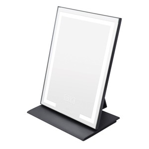 Impressions Vanity Lumiere Touch Pad Pro tabletop lighted makeup mirror with LED Lights. A travel friendly lighted makeup mirror with a premium and stylish faux crocodile leather cover thats detachable and foldable converting into a mirror stand. This rose gold vanity mirror with lights is equipped with a tough aluminum frame and a durable anodized finish. So this makeup mirror for vanity doesnt slow you down on your travel. You can turn your hotel bathroom into your personal beauty studio with this personal light up makeup mirror. This small rectangular mirror includes LED strip lights and a crystal clear view of your entire face and hair, giving you ideal viewing for makeup and other integrated activities. You can dimmer this multi functional smart mirror with a touch sensor switch to adjust the lights brightness. so that you can create the correct makeup looks depending on where you will be going next.