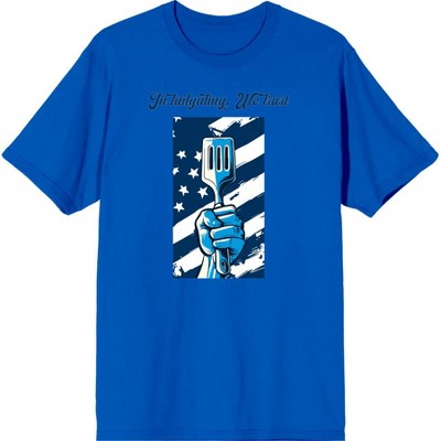"In Tailgating We Trust" American Flag And Spatula Adult Royal Blue Short Sleeve Tee-3XL