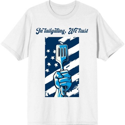 In Tailgating We Trust American Flag And Spatula Adult White Crew Neck Short Sleeve Tee-XL