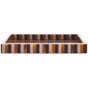 - Elevate your home decor with the sleek and sophisticated Ina Rectangle Tray. Featuring a striking black and brown striped design, this tray is perfect for serving, organizing, or displaying decorative accents