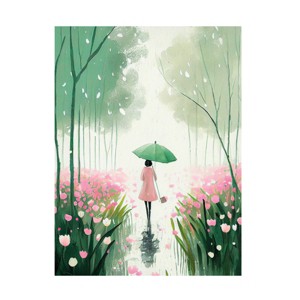 - This Incado Walking Through Tulips in the Rain canvas art by Image Conscious is sure to complement any room décor with its Modern & Contemporary style featuring a woman walking in the rain with an umbrella.