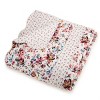 This romantic floral bedspread from Vera Bradley will brighten up your bedroom or guest room. Roses mixed with wildflowers cascade across the top of bed on a cream ground. These colorful flowers have been created with an ikat effect to add a modern pop. The reverse is a coordinating floral ditsy on a cream ground. The vermicelli quilting pattern completes the look of this lovely bedspread.