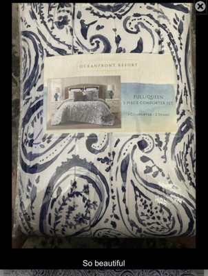 [This review was collected as part of a promotion.] The Oceanfront Resort Indienne Paisley Quilt is simply beautiful … the material is so soft, the pattern is exquisite and the underside material is a beautiful serene blue. After receiving the quilt, I’ve decided to paint the wall behind the bed the same blue to play off the simplicity of the quilt pattern. This 3-piece queen set comes with two pillow shams. You can’t go wrong with the Oceanfront Resort Indienne Paisley Quilt!