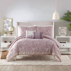 Indigo Bazaar 5pc Socorro Comforter & Sham Bedding Set Light Purple/Ivory