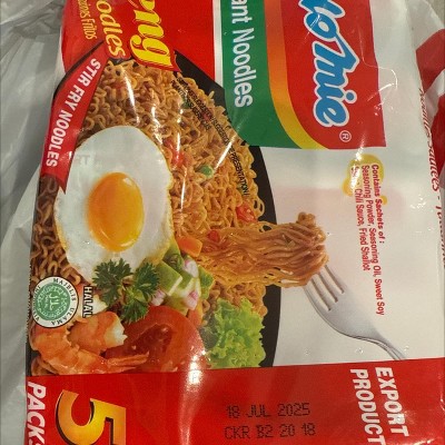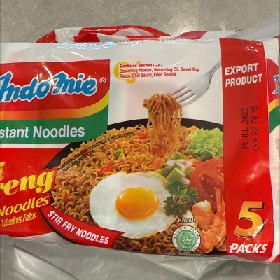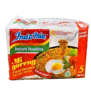 Mi Goreng is a traditional Indonesian fried noodle dish. It's also referred to as bakmi goreng or mie goreng. It is packed with noodles, a seasoning packet, chili sauce, seasoned oil, soy sauce, and crispy fried onions. The instant noodle served without soup and is stirred well with soy sauce, oil, and seasoning. The fried onion bits add such a good crunchiness as well to enjoy an authentic dish in three minutes. Add some sliced chicken on top for an extra treat. Indomie Mi Goreng is an instant fried noodle made by the Indofood company in Indonesia. It is the world's largest instant noodle manufacturer