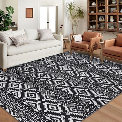 Indoor Decor Modern Abstract Floral Area Rugs Soft Machine Washable Low Pile Non Slip Foldable Floor Carpet for Living Room Bedroom 8'x10'Black