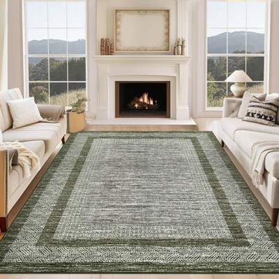 Indoor Modern Bordered Solid Color Area Rugs for Bedroom Living Room Easy Care Washable Soft Low Pile Non Slip Foldable Carpet 9'x12'Green