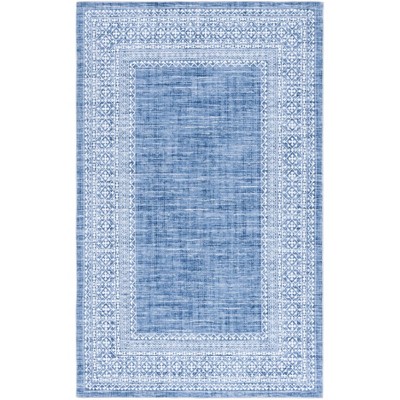 Indoor Modern Bordered Solid Color Area Rugs Ultra Soft Washable Low Pile Non Slip Carpet for Living Room Bedroom Thin Floor Mat 10'x13'Blue