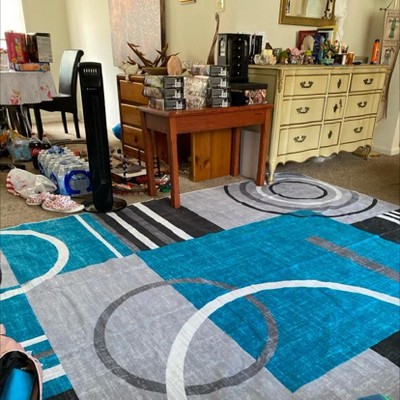 Indoor Modern Geometric Area Rugs Striped Abstract Low Pile Carpets for Living Room Bedroom Washable Non Slip Thin Soft Floor Carpet 9'x12'Blue