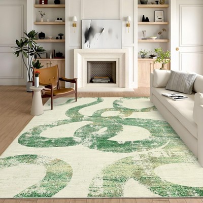 Indoor Room Accessory For Living Room Bedroom Modern Floral Pattern Area Rug Non Slip Soft Carpet Washable Low Pile Floor Mat 5'x7'Green