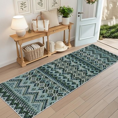 Indoor Room Accessory For Living Room Bedroom Modern Floral Pattern Area Rug Non Slip Soft Carpet Washable Low Pile Floor Mat 2'x6'Black
