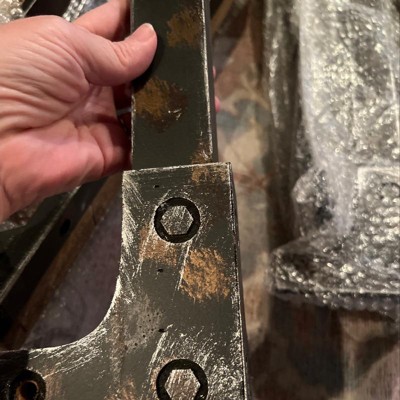 It says “Iron” in the item description. All wood! I would never have ordered it! Look at photos below. Painted to look like aged iron.