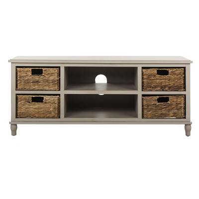 Add a touch of industrial style to your living room with this 58" TV stand in gray. Combining sturdy metal construction with wood-look panels, it fits TVs up to 65 inches and offers ample storage with double doors and open shelves for media, decor, and electronics.