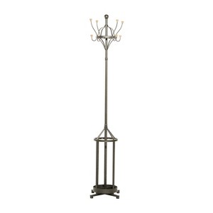 - •Featuring a finial and curved metal hangers with wooden tips, this rack can support your coats, small bags, caps, and umbrellas