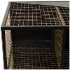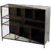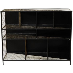 - •Large metal-framed console table showcases a rectangular body structure styled with 9 mesh grid shelving units and 4 short feet