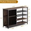 Industrial Side Table with Charging Station, Retro End Table with LED LightProduct Description:Combine industrial charm with modern functionality in this versatile retro side table designed for today's connected lifestyles. Featuring a spacious storage compartment, dedicated wine and glass racks, and integrated LED ambient lighting, this piece creates the perfect accent for any living space. The built-in charging station with 2 USB ports and 2 power outlets keeps your devices powered within easy reach, while the rustic brown metal construction adds character to your decor. Perfect as an end table, bar companion, or bedside unit, this multi-functional table organizes your essentials while enhancing your room's atmosphere with its warm, industrial aesthetic.Key Features:1. Integrated Charging StationStay conveniently powered with a built-in electrical panel featuring 2 USB charging ports and 2 standard power outlets. This practical design eliminates the need for extension cords and keeps phones, tablets, and lamps energized right where you use them most.2. Dedicated Wine & Glass StorageFeatures specially designed racks to securely store wine bottles and hanging glasses, making it an ideal companion for home bars, living rooms, or entertainment areas. The organized display keeps your barware accessible while adding sophisticated functionality.3. Ambient LED Lighting SystemCreates a warm, inviting atmosphere with built-in LED lights that cast a soft glow throughout the storage area. The energy-efficient lighting enhances evening ambiance while highlighting your displayed items and adding practical visibility.4. Spacious Multi-Level StorageOffers versatile organization with a large main compartment for books, blankets, or electronics, combined with specialized racks for beverage service. The thoughtful layout helps declutter your space while keeping essentials neatly arranged and within reach.5. Industrial Retro DesignShowcases a distinctive rustic brown metal finish with authentic industrial styling that complements various decor themes from urban loft to modern farmhouse. The robust construction and vintage aesthetic create a striking focal point that balances durability with visual appeal.Specifications:? Style: Industrial Retro with Rustic Finish? Material: Metal Framework? Color: Rustic Brown? Overall Dimensions: 47.24"D x 13.39"W x 31.5"H? Special Features: LED Lighting, Charging Station, Wine Rack? Power Features: 2 USB Ports, 2 AC Outlets? Storage: Multi-Level with Glass Display? Mounting Type: Freestanding? Recommended Locations: Living Room, Bedroom, Bar Area