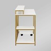 - Two open shelves on the side for added storage.